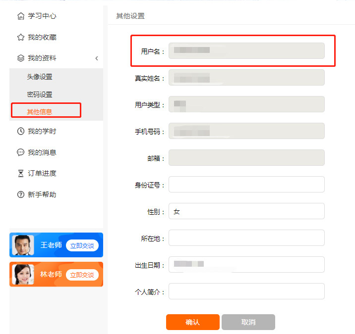 3、在個(gè)人資料里修改頭像和個(gè)人其他資料,包括姓名、生日、手機(jī)號(hào)、年級(jí)、班級(jí)、學(xué)校、QQ、E-mail.