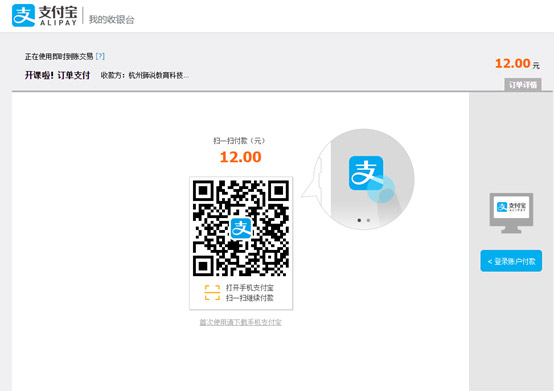 1.支付寶支付:可手機(jī)掃碼或在網(wǎng)頁(yè)上登錄支付寶賬號(hào)付款,完成后點(diǎn)擊“支付完成”。